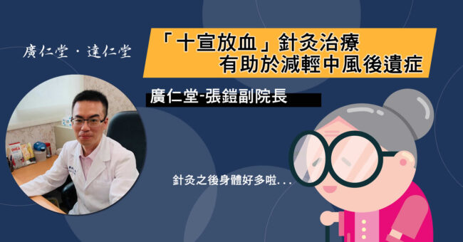 「十宣放血」針灸治療,有助於減輕中風後遺症-張鎧醫師 張鎧醫師, 針傷科By 站長2020 年 11 月 25 日依據衛生福利部國人十大死因統計顯示,腦血管疾病均為國人10大死因的第2-4位,平均每年奪走1萬多條寶貴的性命。…