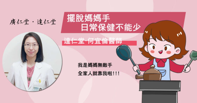 擺脫媽媽手,日常保健不能少-何宜倫醫師 何宜倫醫師, 針傷科By 站長2020 年 11 月 9 日為家庭忙進忙出,買菜洗碗,整理內務,這是一般家庭媽媽的寫照,這樣周而復始的動作,很容易對手部的肌腱產生過度使用…