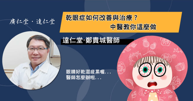 乾眼症如何改善與治療?中醫教你這麼做-鄭貴城醫師 內科, 鄭貴城醫師, 針傷科By 站長2020 年 11 月 27 日最近有許多門診民眾,一直抱怨眼睛長期乾澀、疲勞、有異物感,而且時常流眼淚,而長時間在冷氣房的族群更有怕風、畏光…